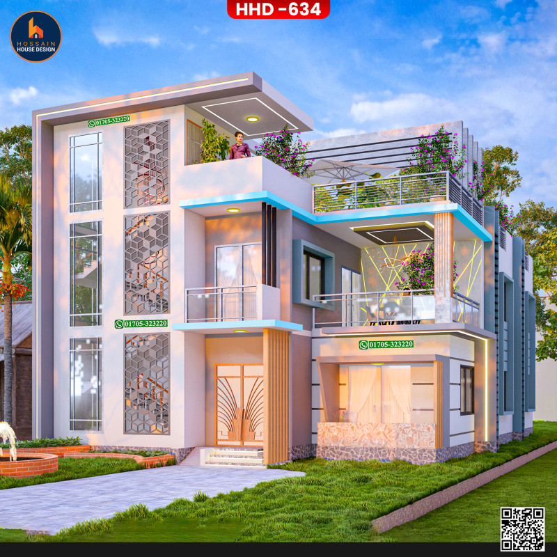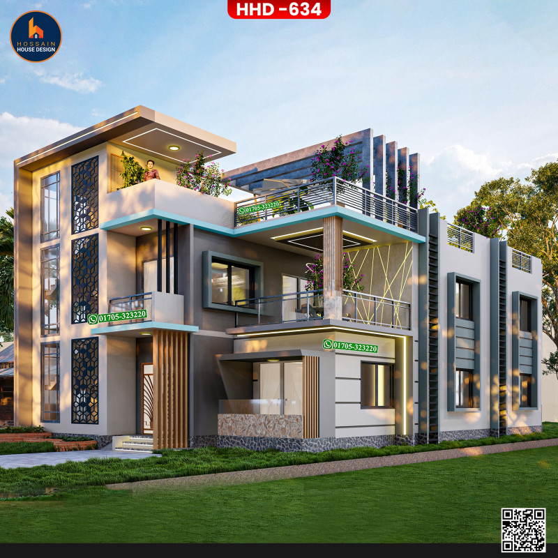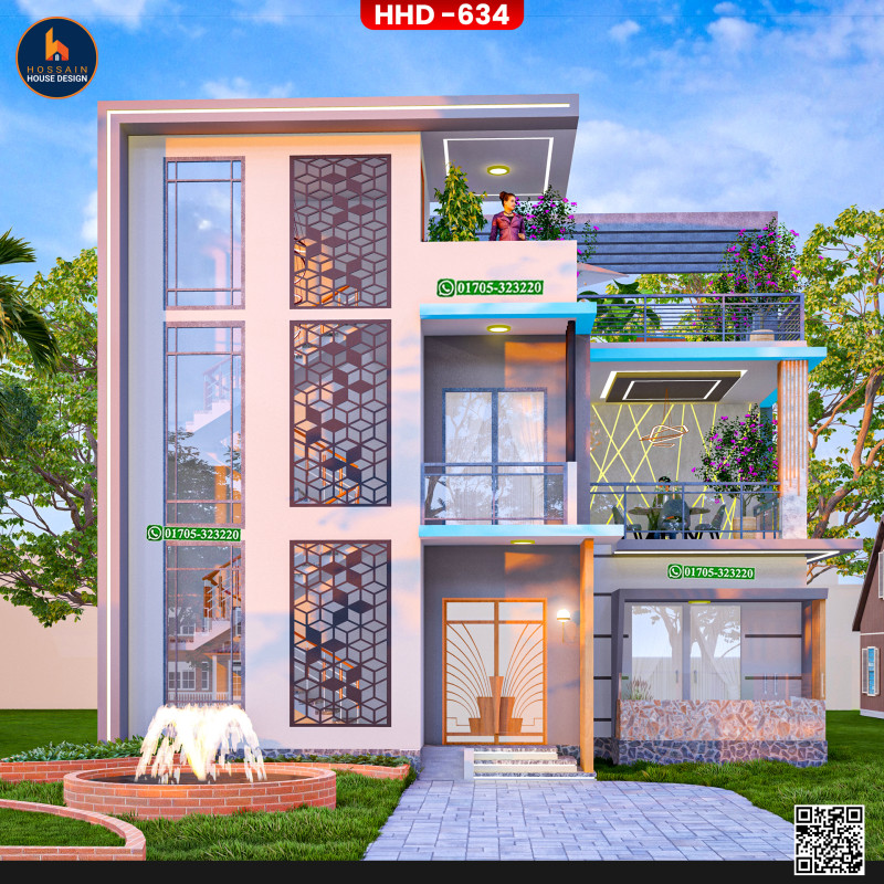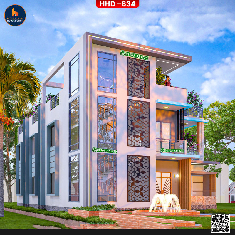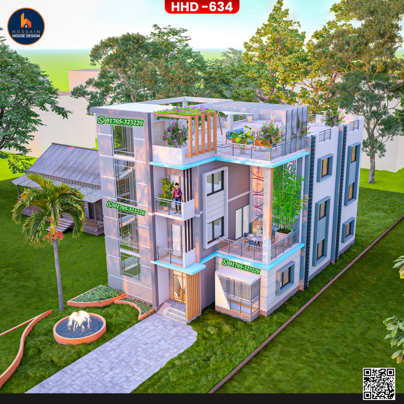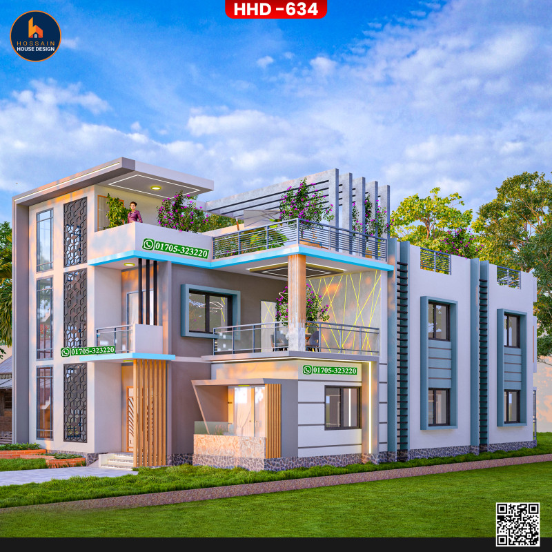 HHD 634 – 3 Storied House Design in Bagha, Rajshahi is a thoughtfully planned multi-level residential project for homeowners who want to build a spacious and modern home in Bangladesh. Designed using RCC (Reinforced Concrete), the structure is ideal for long-term durability and flexible use.