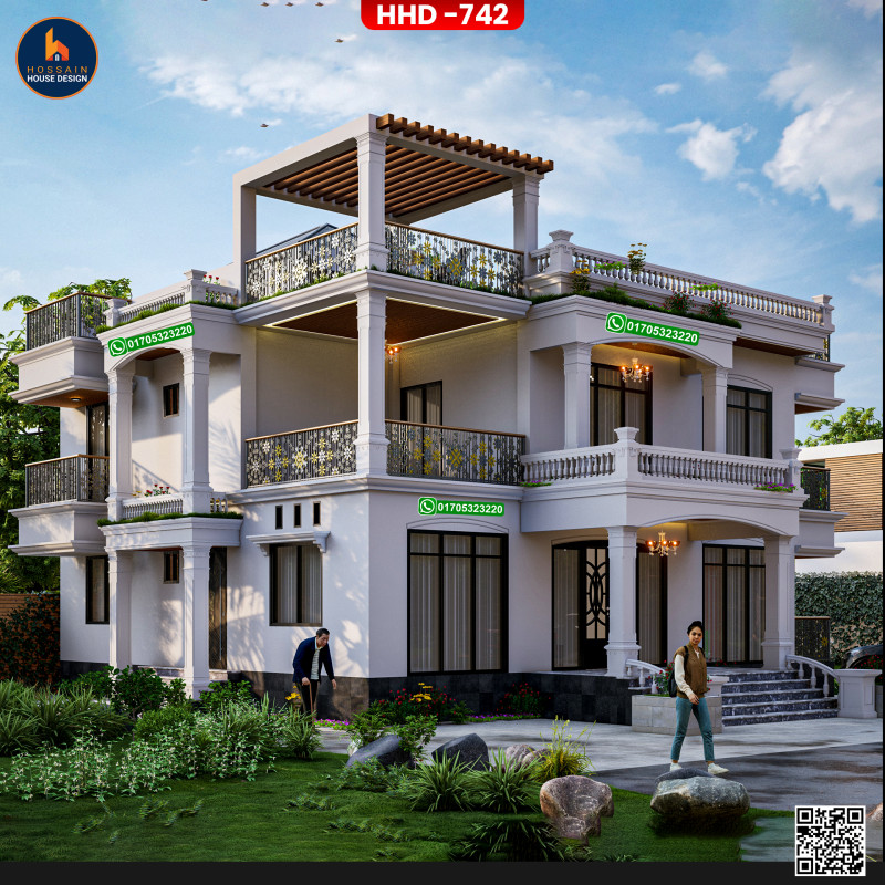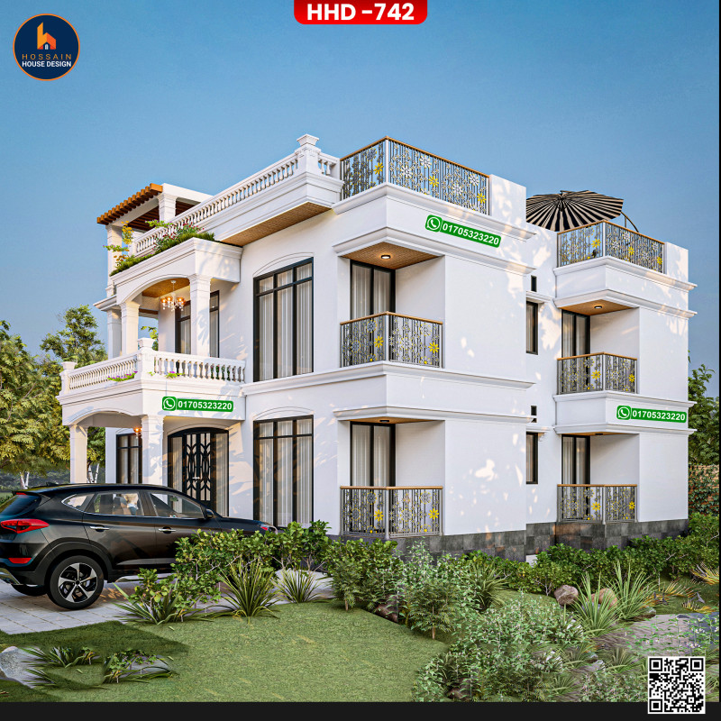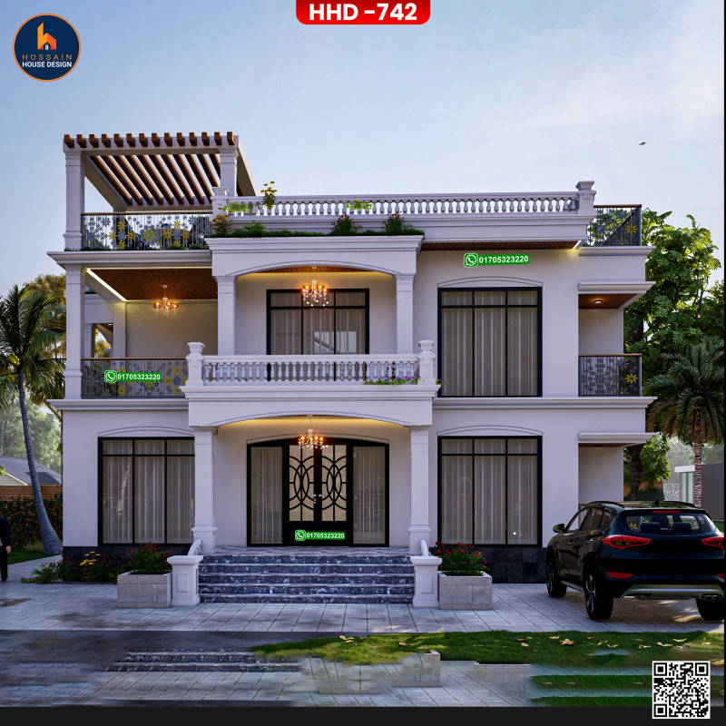 HHD 742 – 2 Storied House Design in Damudya, Shariatpur is a stylish and functional duplex residential home, ideal for families looking for long-term comfort and architectural elegance. The design is based on a solid RCC (Reinforced Concrete Construction) structure for durability and safety.