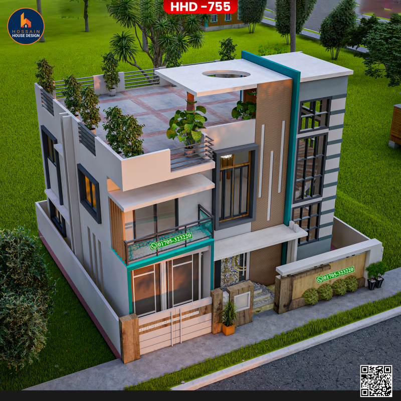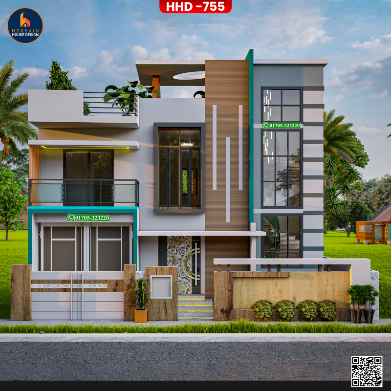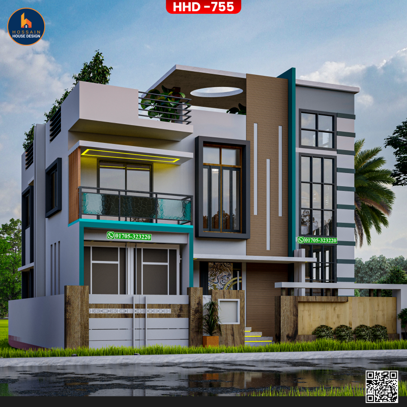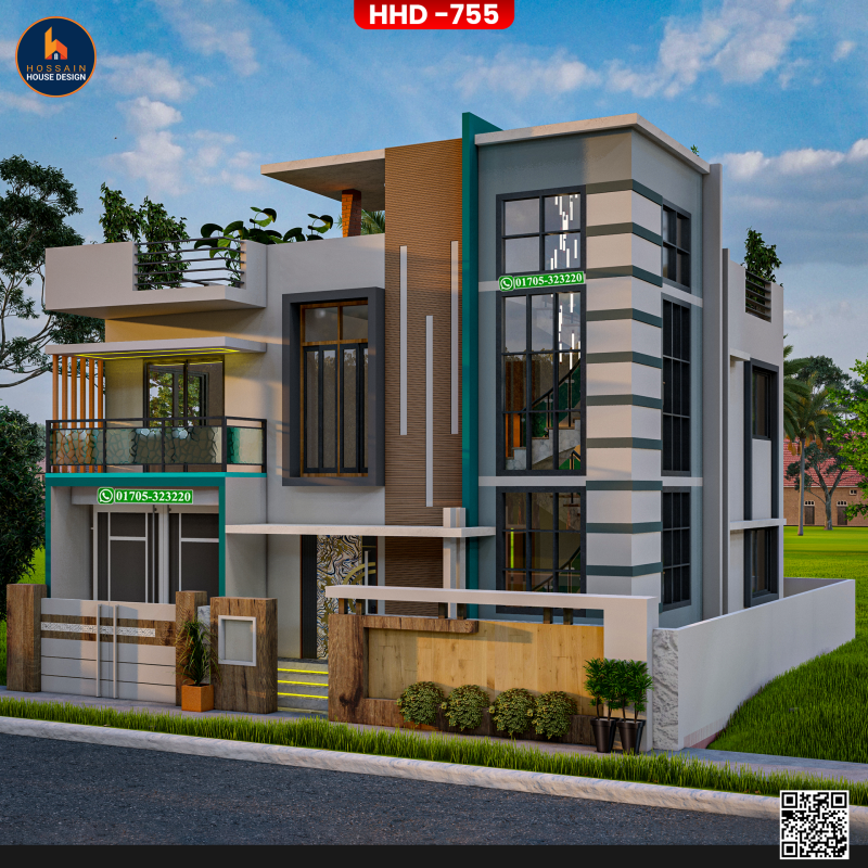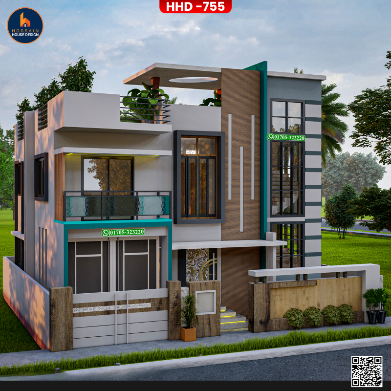 HHD 755 is a beautifully crafted premium duplex house design located in Banddar, Narayanganj. This modern 2-storied residential plan reflects the perfect balance between luxury, comfort, and architectural sophistication—ideal for families looking to build a standout home in Bangladesh.