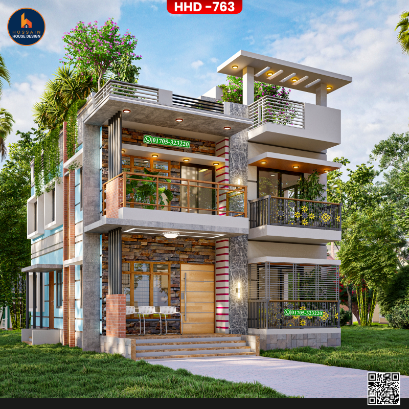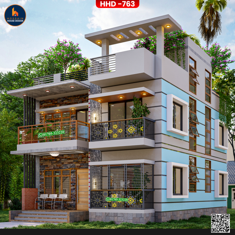 HHD 766 is a triplex premium house design situated in Naria, Shariatpur, tailored for modern families who value space, elegance, and architectural excellence. This 3 storied residential plan offers a luxurious living experience with functional design that fits both urban and semi-urban lifestyles in Bangladesh.