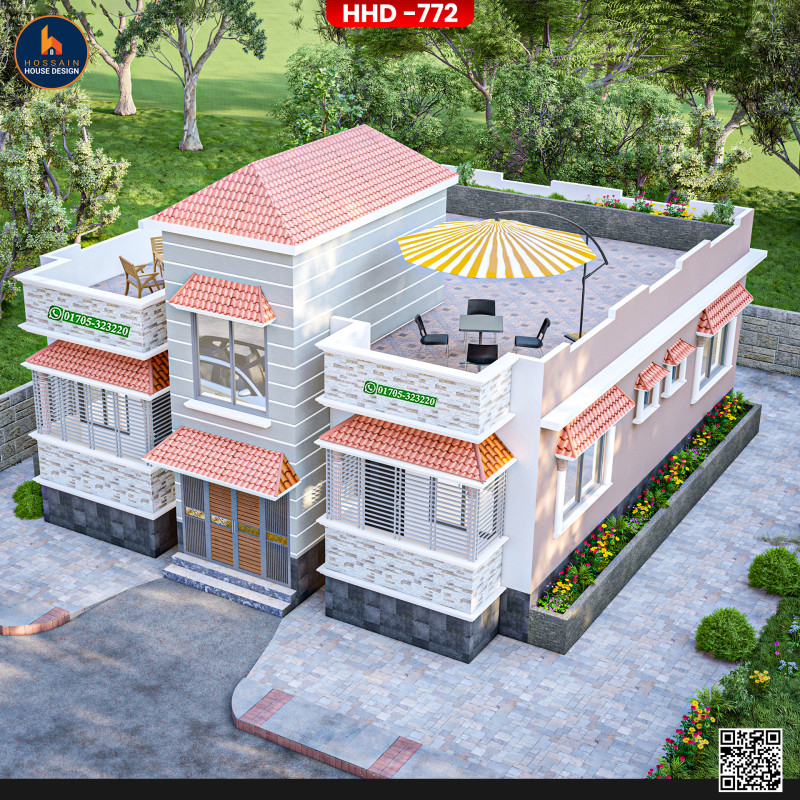 HHD 772 is a thoughtfully planned 1 storied house design situated in Naradia, Comilla. Tailored for small to medium-sized families, this modern single-floor house plan blends comfort, simplicity, and space efficiency — perfect for rural and semi-urban areas across Bangladesh.