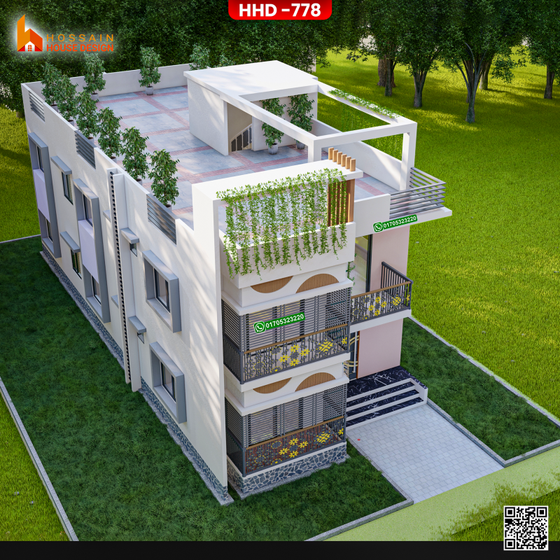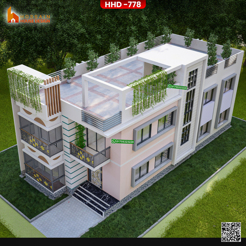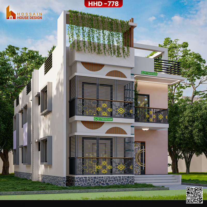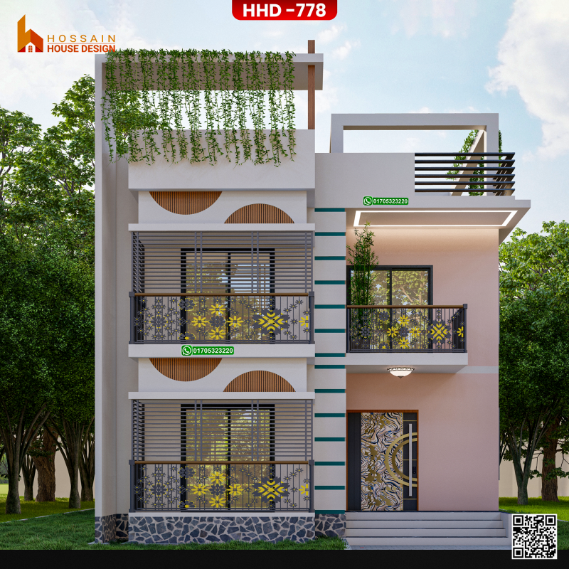 The HHD 778 duplex house design is a modern and elegant solution tailored for families in Kurirchar, Gournadi, Bangladesh. Featuring contemporary architectural style and thoughtfully planned interiors, this duplex home maximizes comfort, space, and functionality.